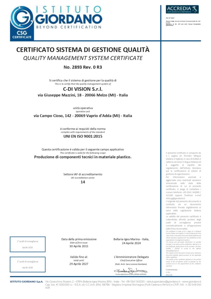 Certificato di tecnologia delle materie plastiche